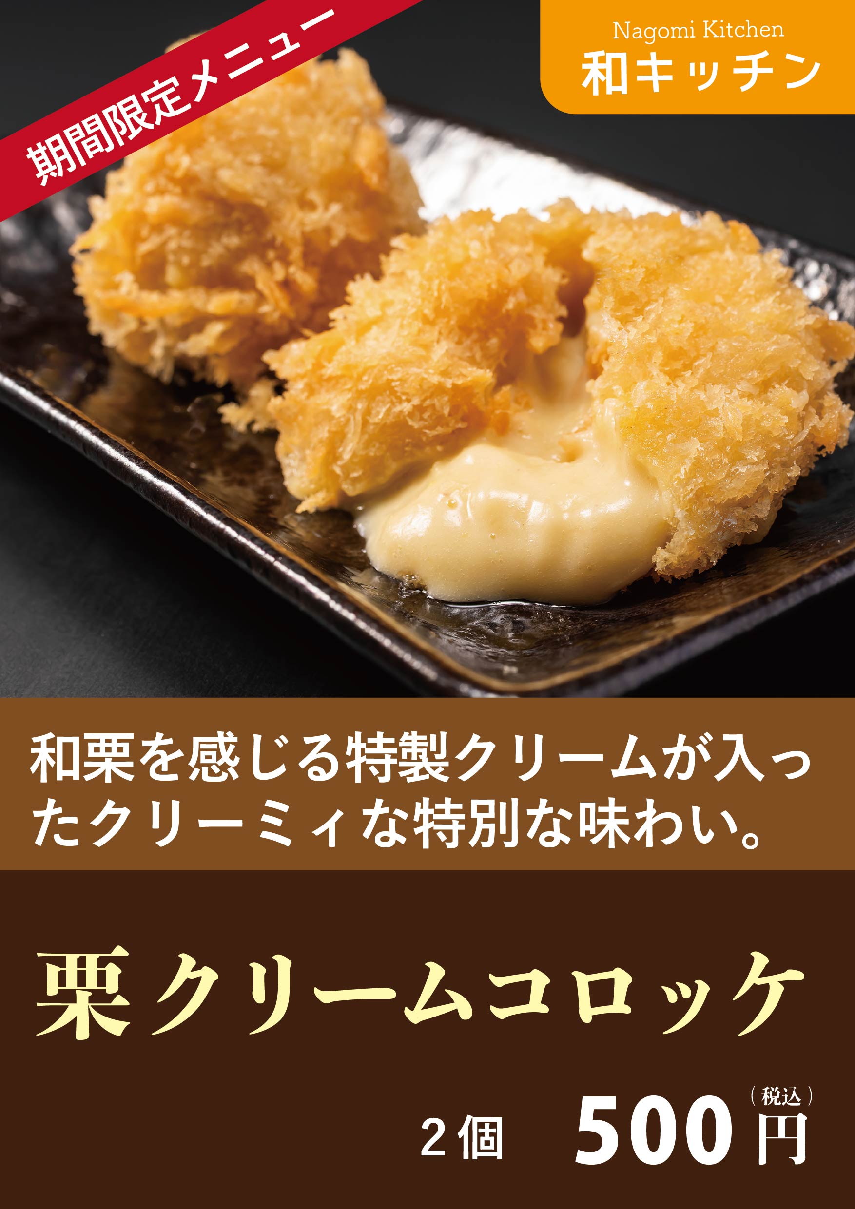 ※「栗クリームコロッケ」「唐揚げ」単品メニューを、11/29(土)よりご提供いたします。
