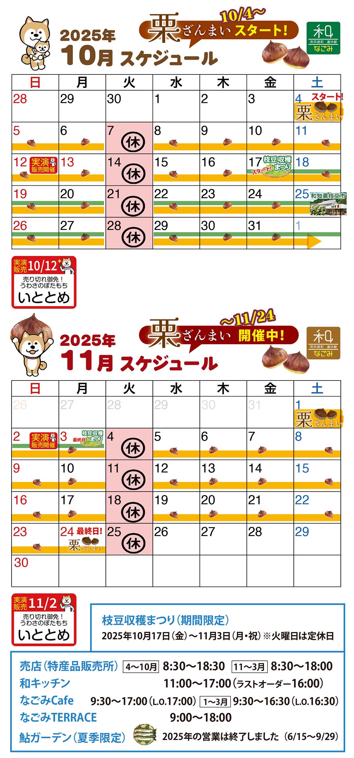 いつも道の駅 和(なごみ)をご利用頂き誠にありがとうございます。 事前に営業日カレン…