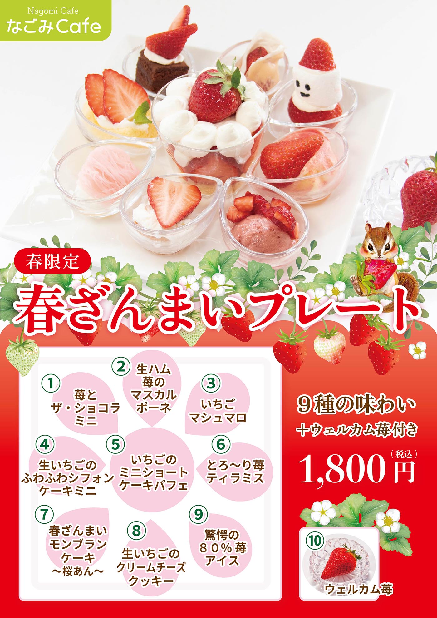 いろんな味わい9種類+ウェルカム苺付きの春ざんまい限定とっておきプレートです。