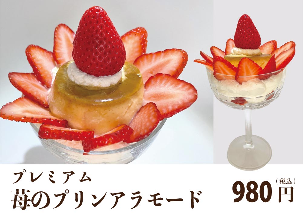 プリンセス級の華やかさ!フレッシュ苺・固めプリン・なごみ自慢の特製生クリームたっぷりの春限定プリンアラモード