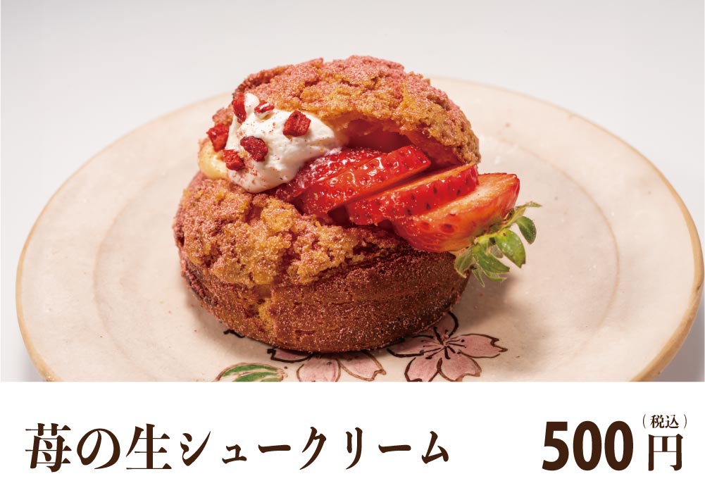 なごみ特製のシュークリームに、苺が入って華やかで豪華に。