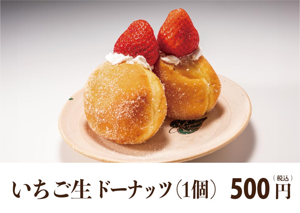 大きい苺をどーんとのせて。生ドーナツは生クリームたっぷり!