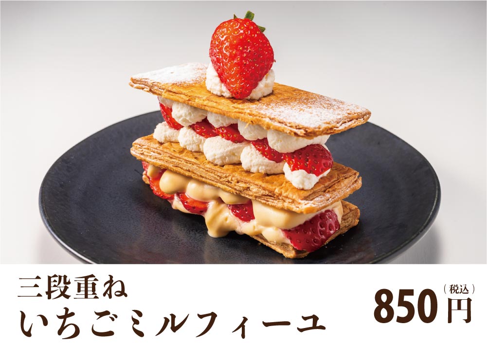 サクサク特製パイに、生クリーム、カスタード、苺。幸せの美味しさが重なり合う!