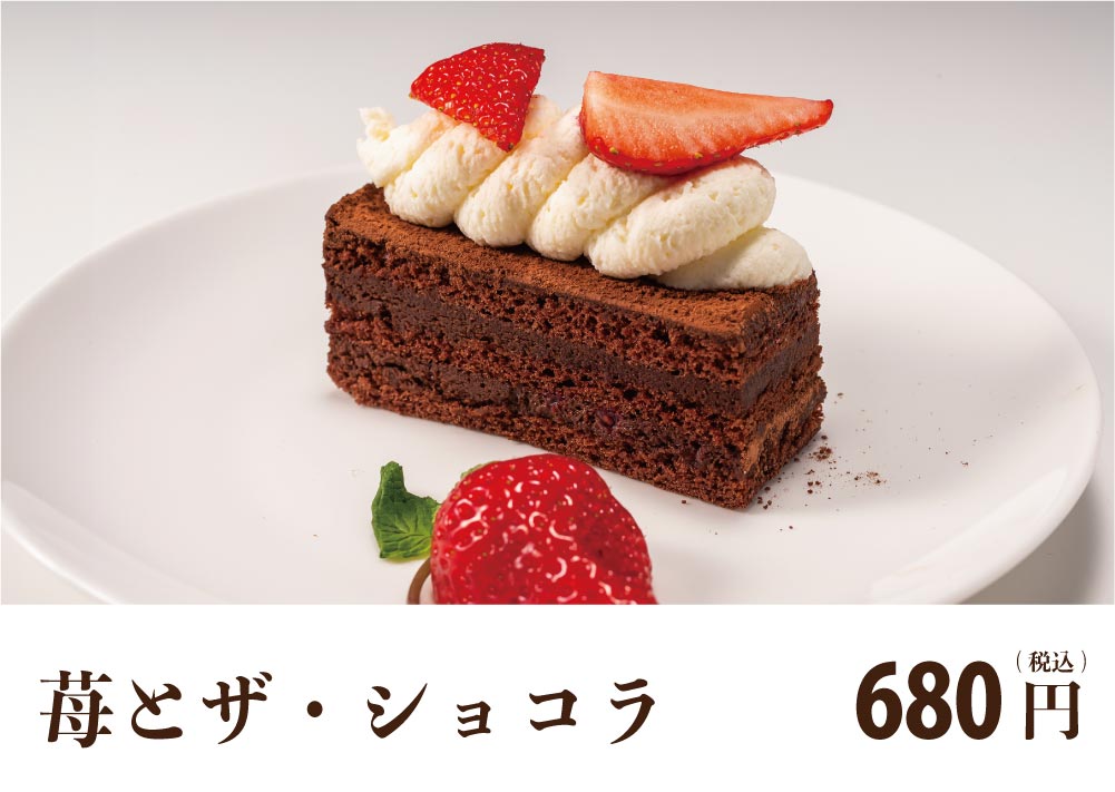ベルギーチョコの豊かな味わいの贅沢な生チョコケーキに苺を添えて