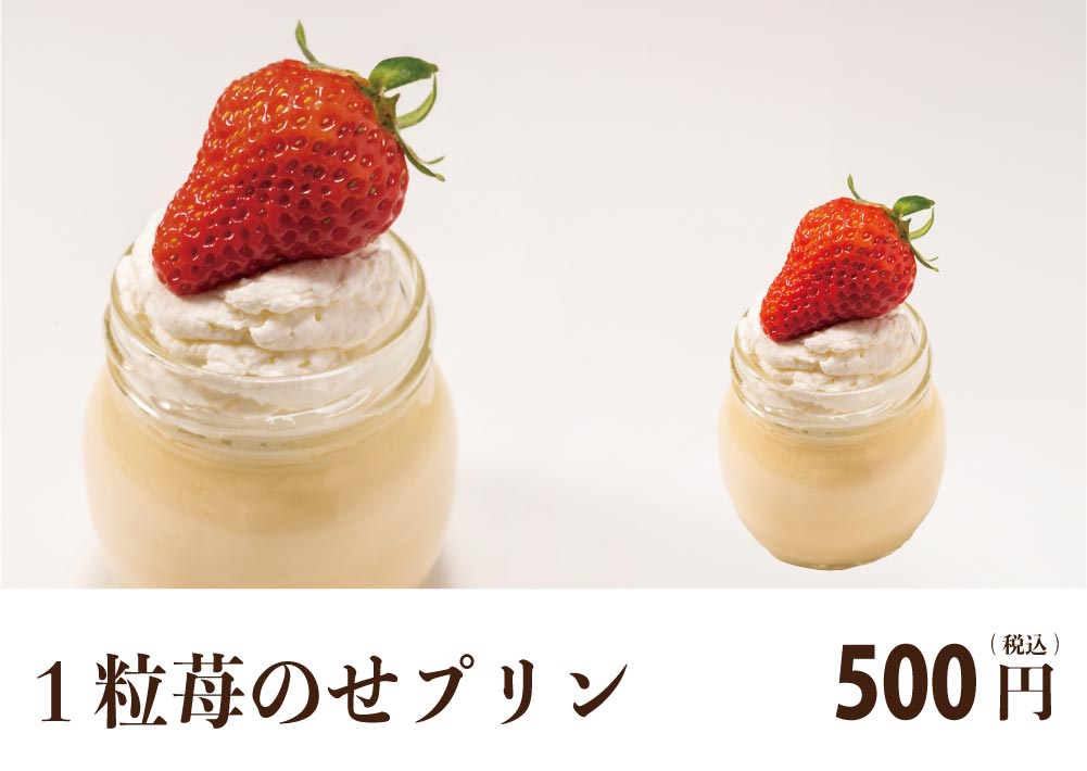 一粒いちごでプリンがおめかし。スタンダードな味わいのプリンです。