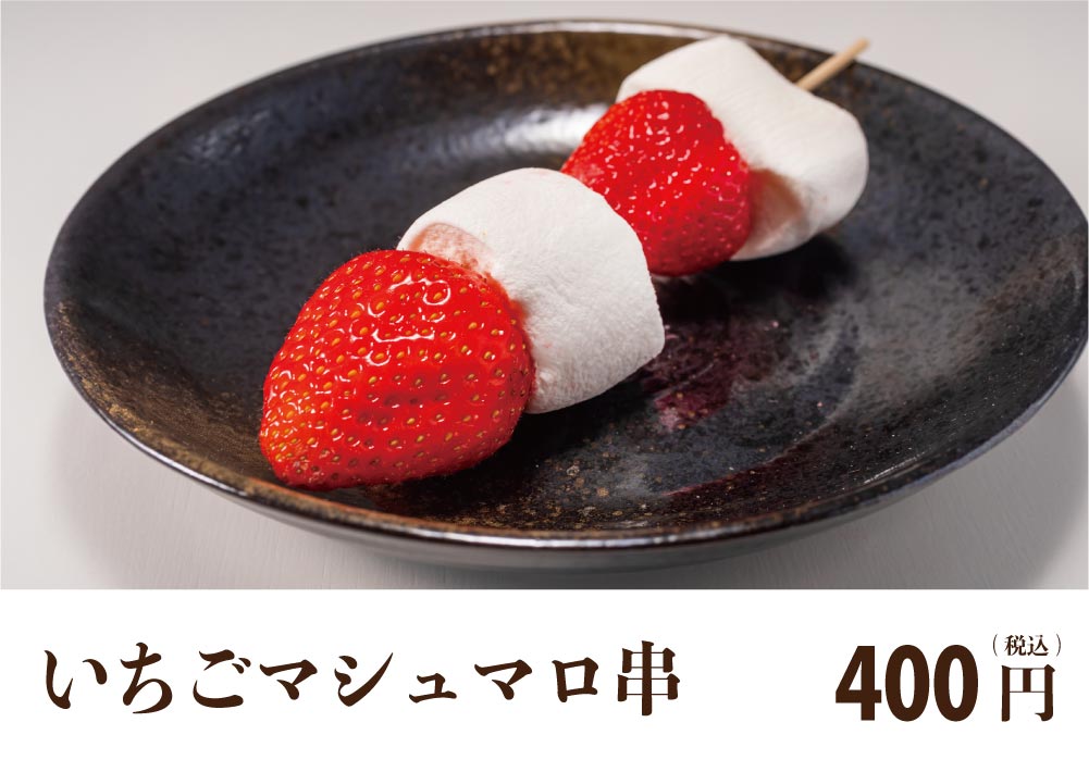串にささっているだけで、お祭り気分。マシュマロと苺をほおばって!