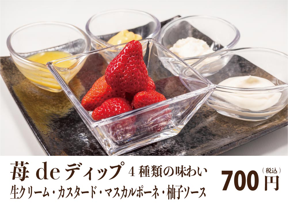 生クリーム、カスタード、マスカルポーネ、柚子ソースでディップ!4種の味わい
