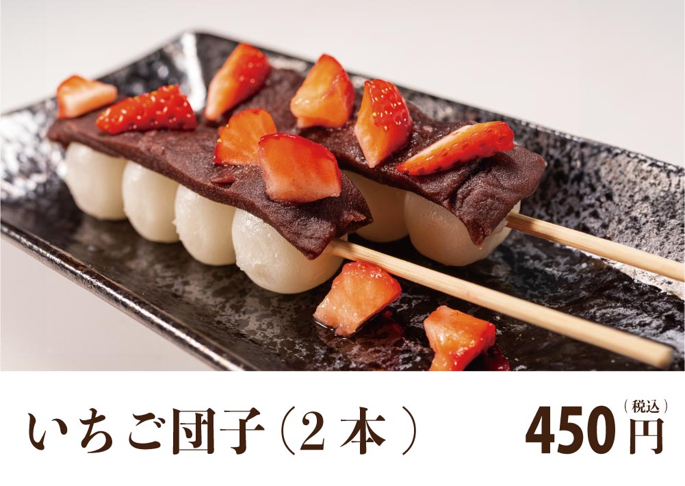 団子好きさんのための、苺とあんこをのせた一品。小さめ団子2本セット