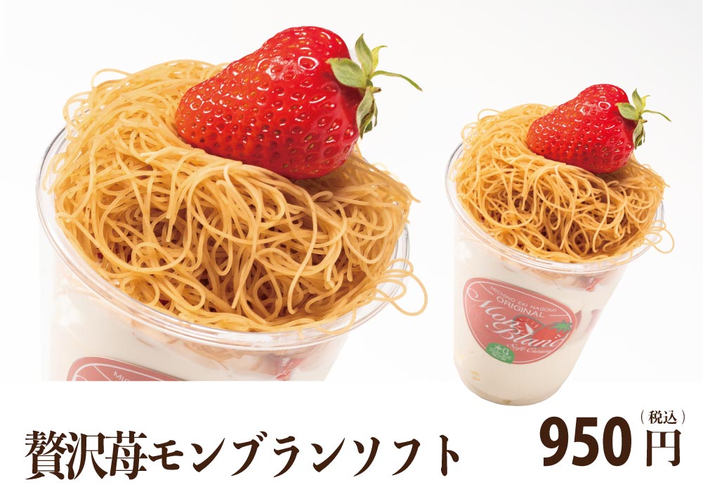 フレッシュな大きめ苺が4粒も!贅沢な苺入りの和栗モンブランソフト。毎年可愛くて美味しいと大評判!