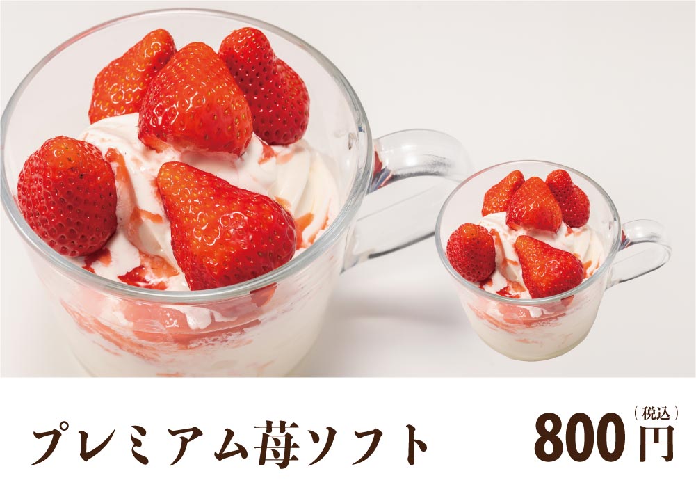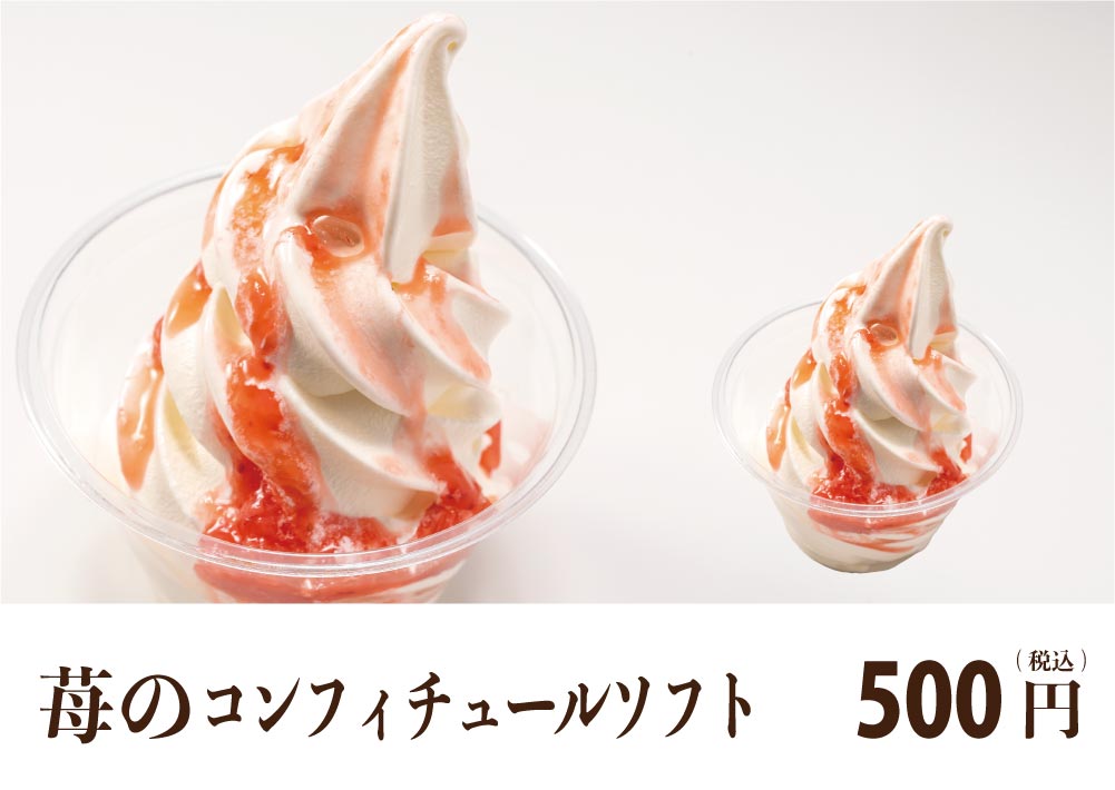 濃厚ミルクソフトに苺のコンフィチュールをたっぷりと。みんな大好きな味!