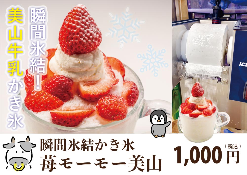感動のミルキー感。美山牛乳を使用した、ふわふわさらさら特製かき氷に苺と生クリームがめちゃウマ!