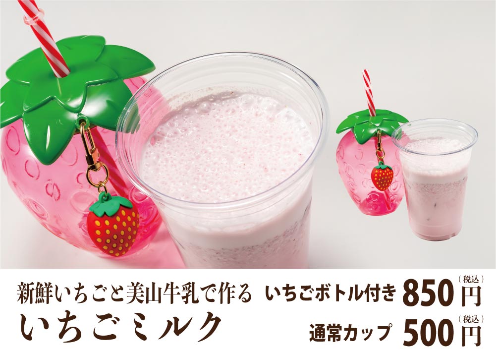 新鮮いちごと、美山牛乳で作るフルーティないちごみるく。かわいい苺ボトル入り人気!