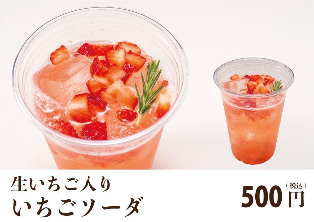 カットされたフレッシュな苺が入ったソーダ。爽やかシュワシュワ〜。