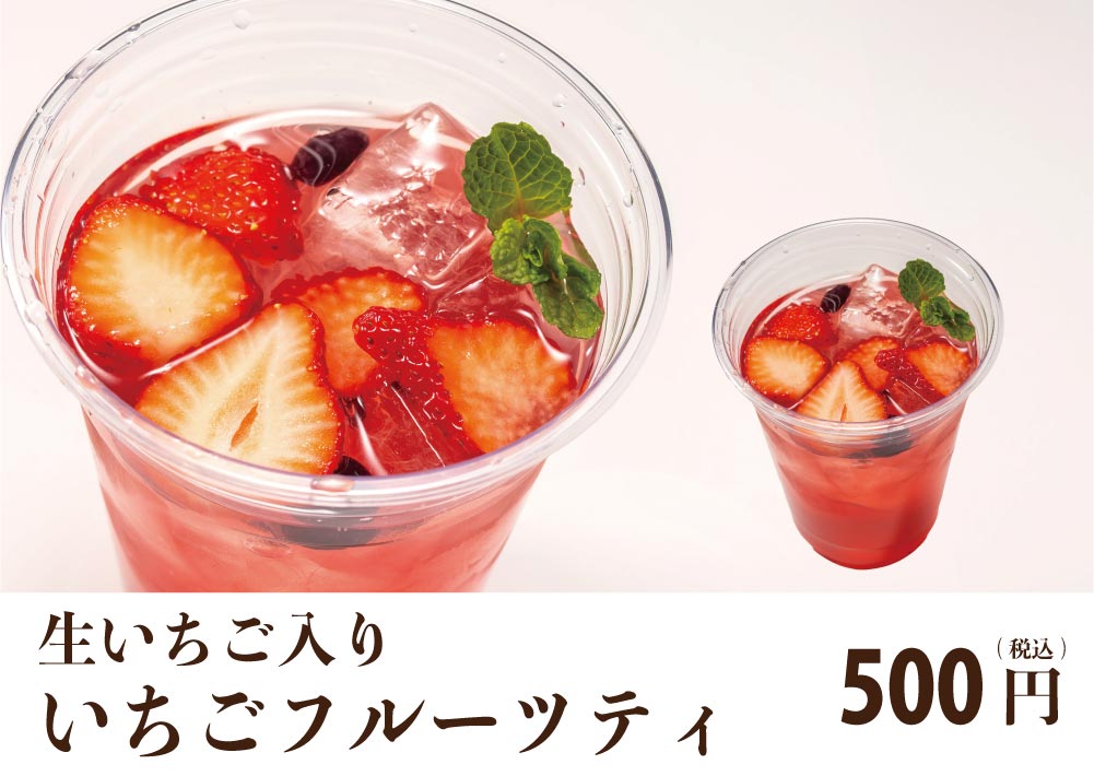 カットされたフレッシュな苺が入ったフルーツティ。爽やかですっきりした味わい。