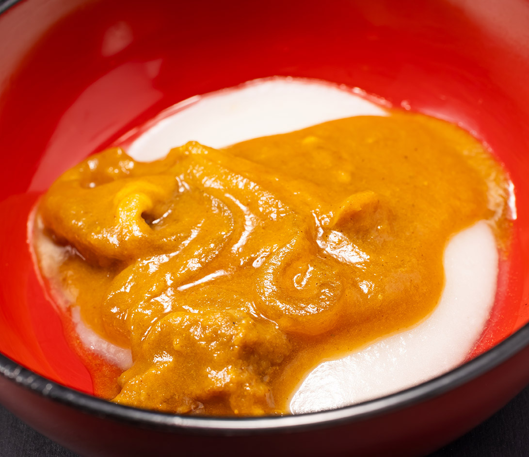 だしが効いた味わい深い特製和風カレー。カレーうどんならぬ、カレー餅!
