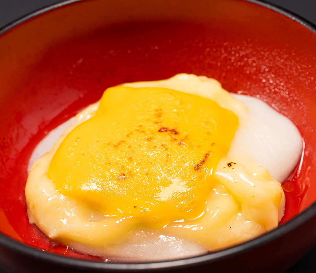 とろ〜りチーズにチェダーチーズを炙って仕上げ。チーズとお餅のコンビ最高!