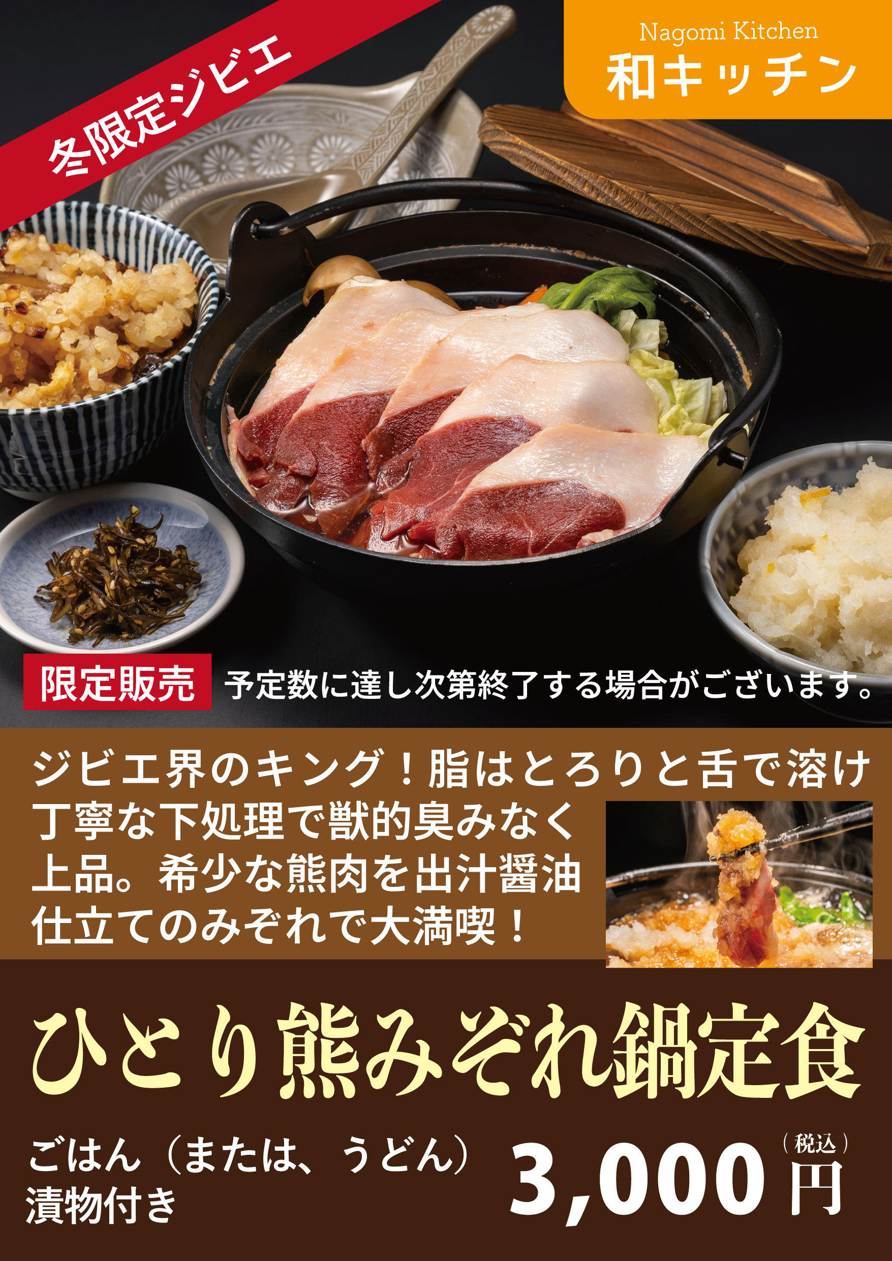 ひとり熊みぞれ鍋定食 3,000円(税込)