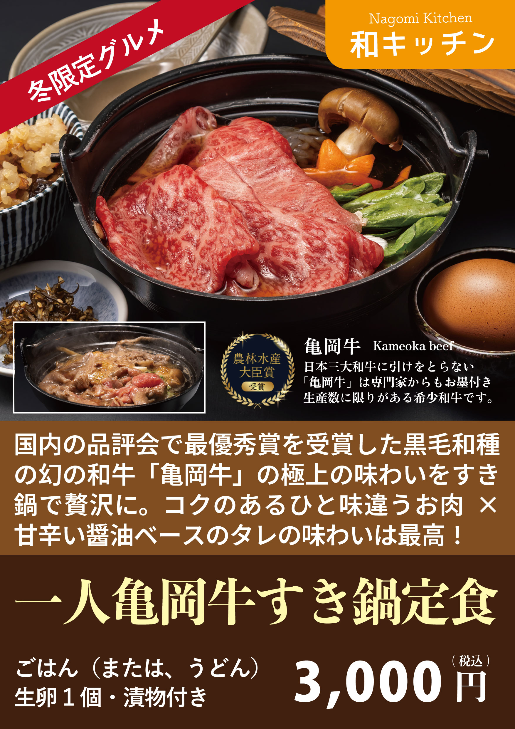 一人亀岡牛すき鍋定食 3,000円(税込)
