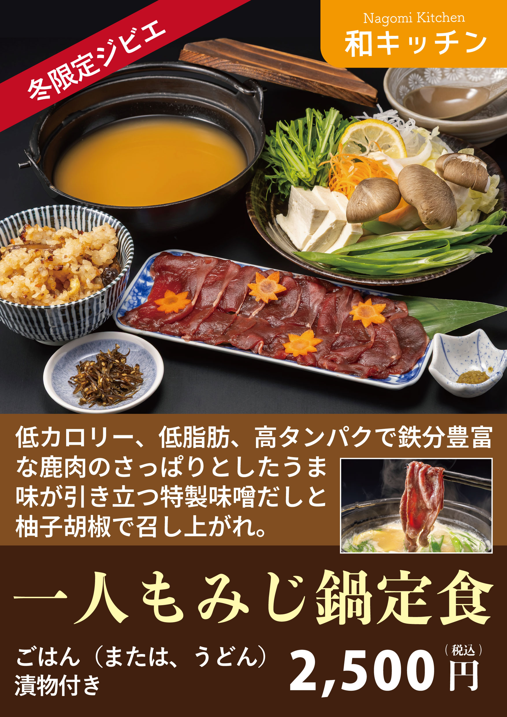一人もみじ鍋定食 2,500円(税込)