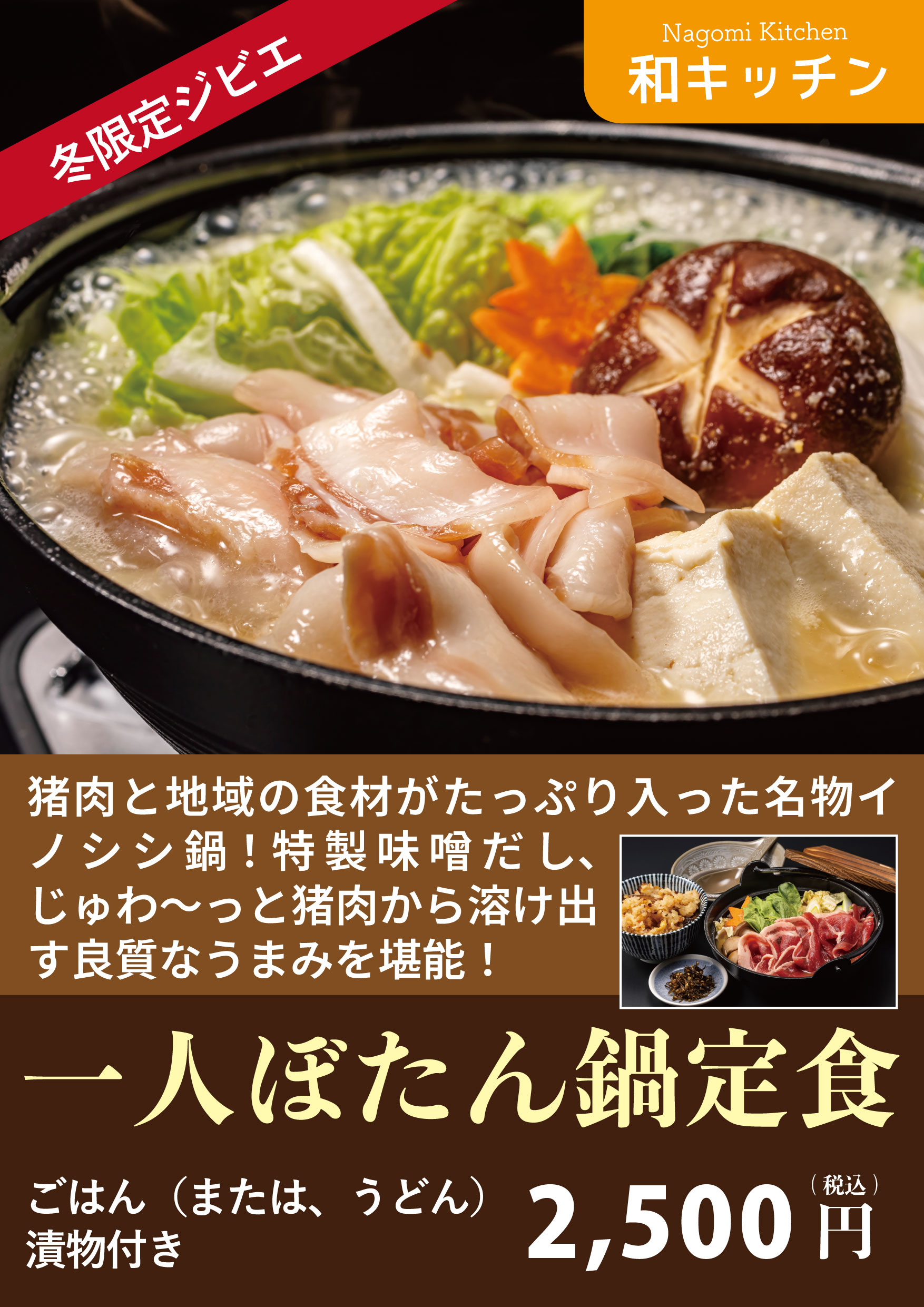 一人ぼたん鍋定食 2,500円(税込)