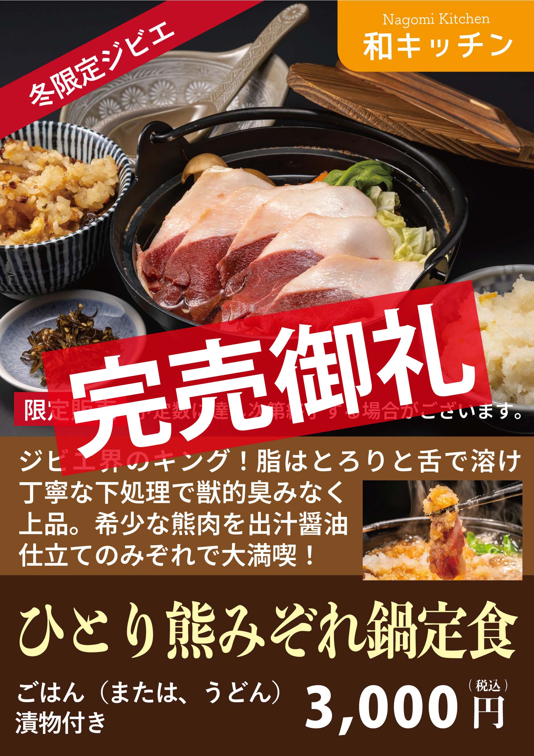 ※「ひとり熊みぞれ鍋定食」完売いたしました。今季は終了となります。(1/18)