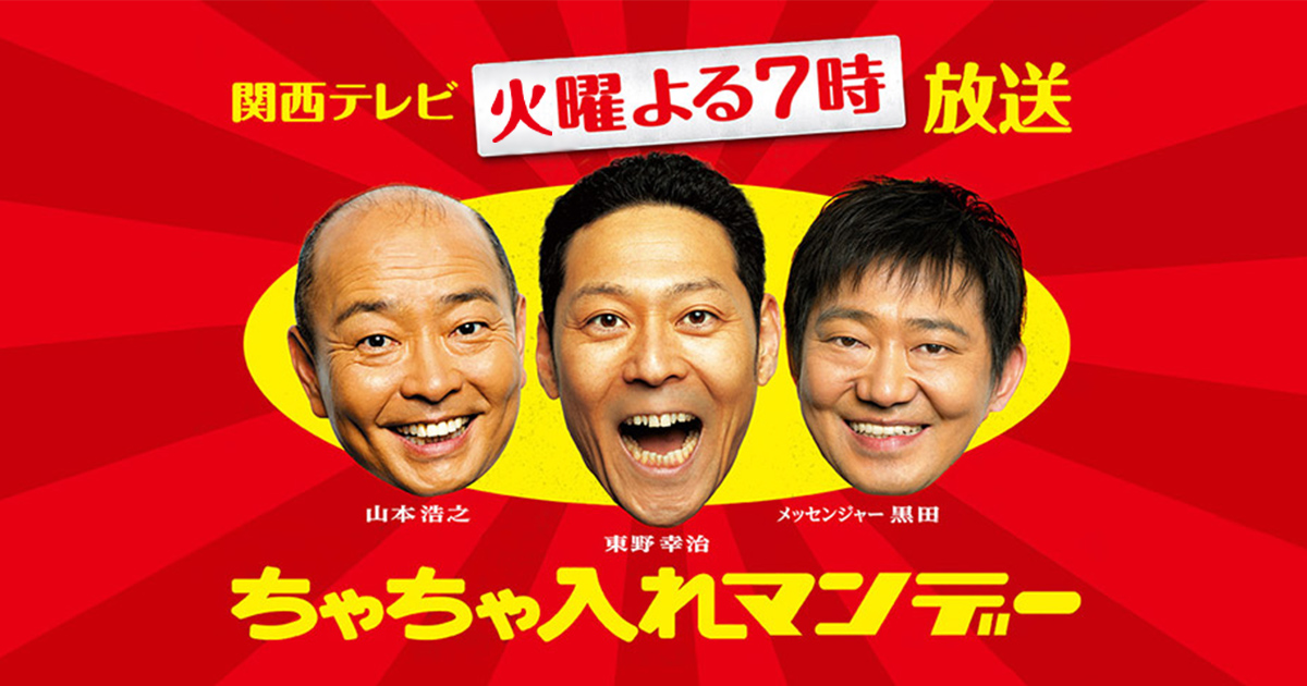 東野幸治、山本浩之、メッセンジャー黒田のMCトリオが、世の中のあらゆるものに関西目線で“ちゃちゃ”を入れる情報トークバラエティー「ちゃちゃ入れマンデー」