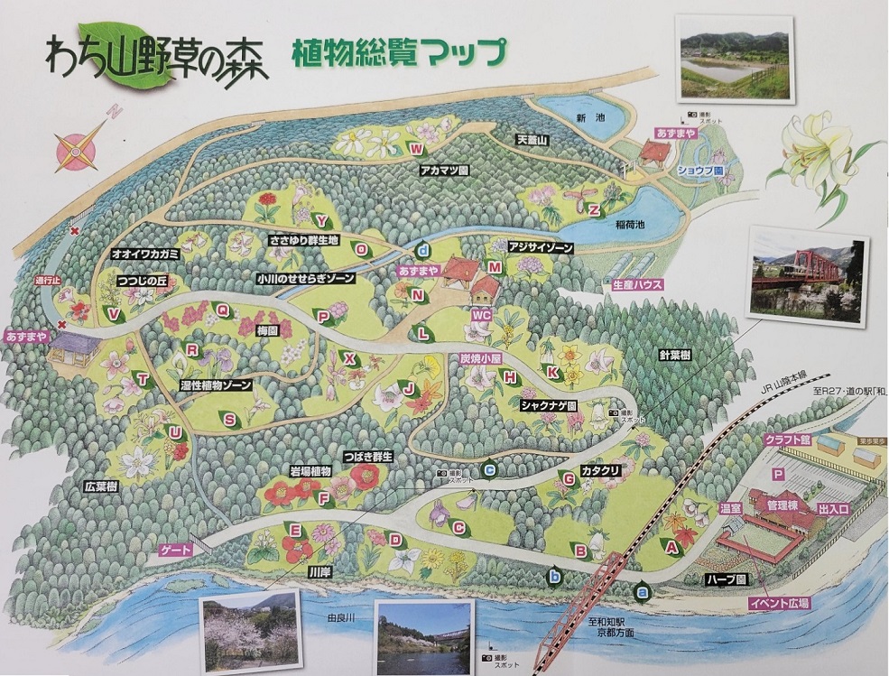 「わち山野草の森」は、道の駅 和-なごみ-から徒歩5〜8分程で行ける場所にあります。