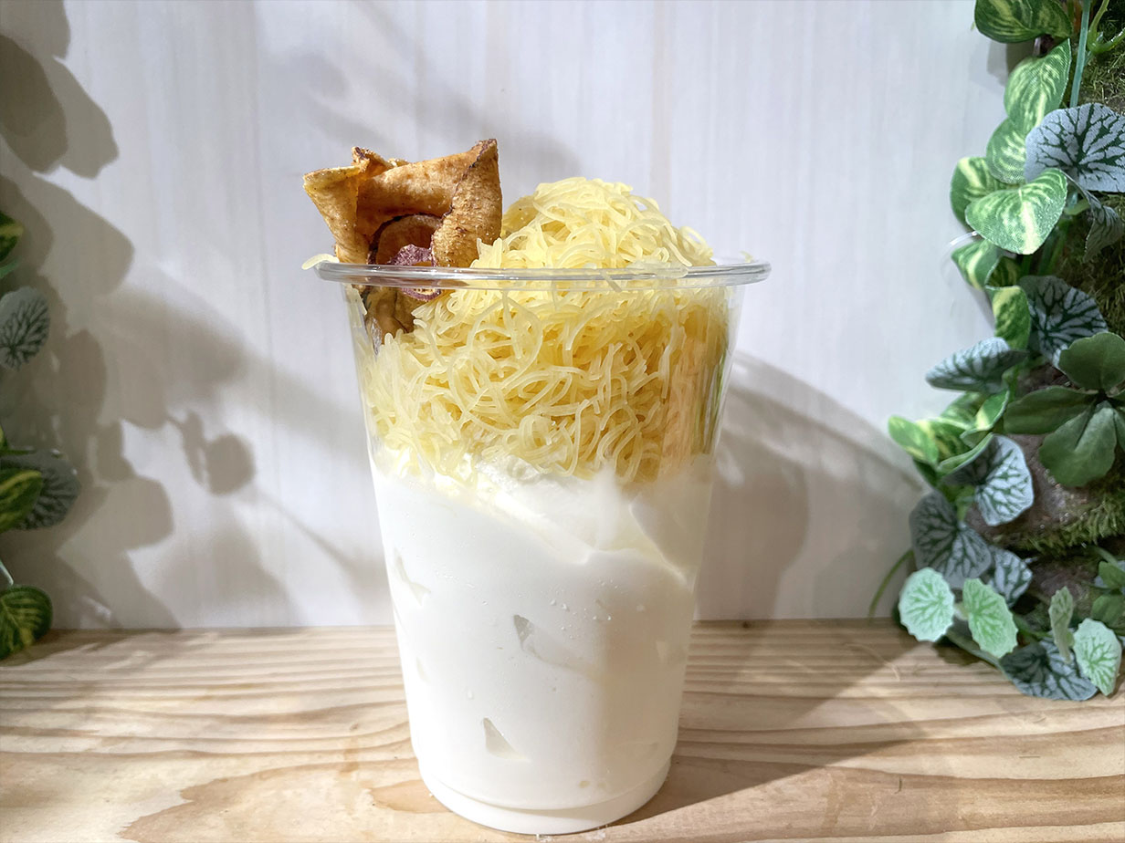 (11/29(土)開催の わち山野草の森で開催される「森のpetit marché(プチマルシェ)」で登場する「緑のモンブラン」パフェのソフトクリームバージョン)