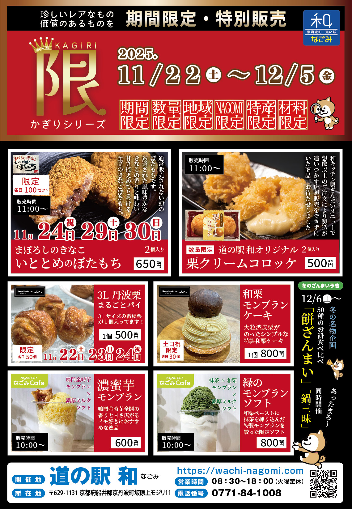 「限-KAGIRI-」では、期間限定・数量限定・地域限定・NAGOMI限定・特産限定・材料限定など、